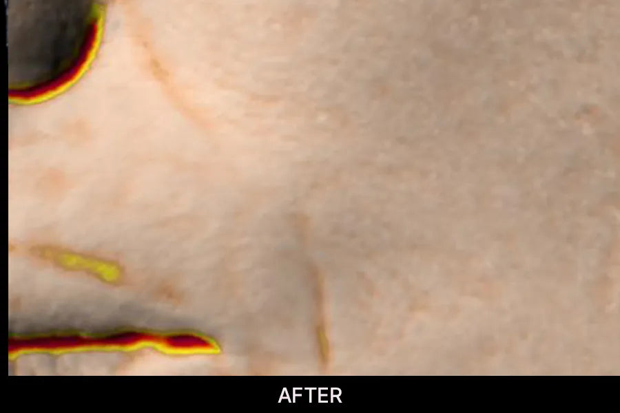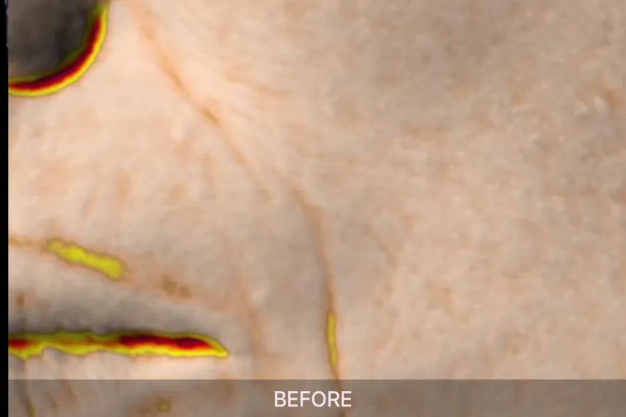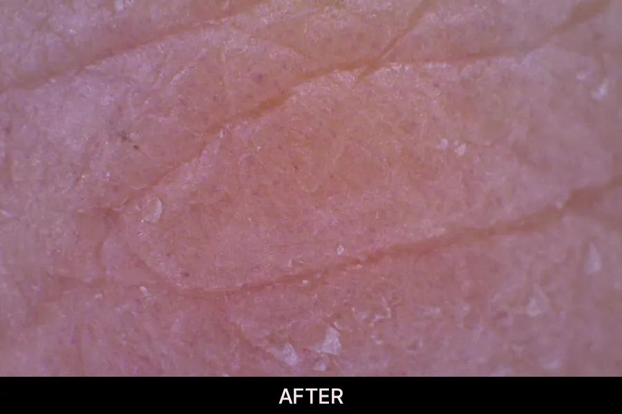After just one application, notice remarkable improvement in skin hydration. Notice an immediate 223.95% increase in moisture levels. Observe the enhanced blue hue in the image, reflecting improved hydration. Additionally, achieve a 16.35% increase in moisture retention through deep skin moisturization.