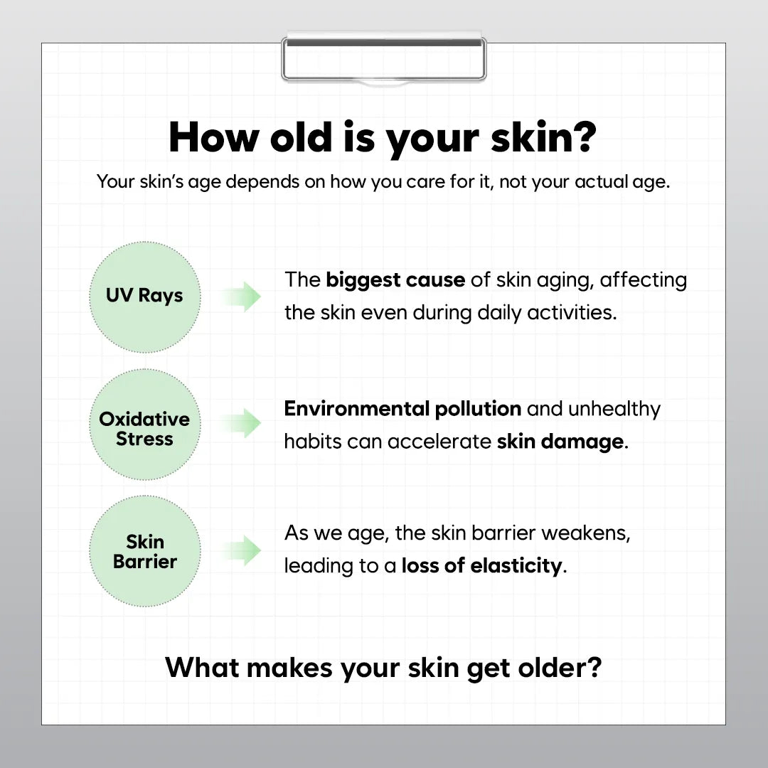 : The biggest cause of skin aging, affecting the skin even during daily activities.