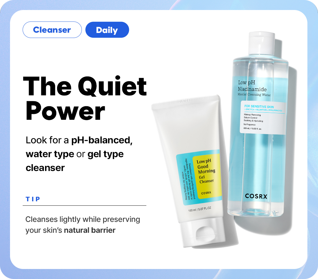 Consider a pH-balanced, water or gel cleanser. It helps maintain your skin's natural barrier