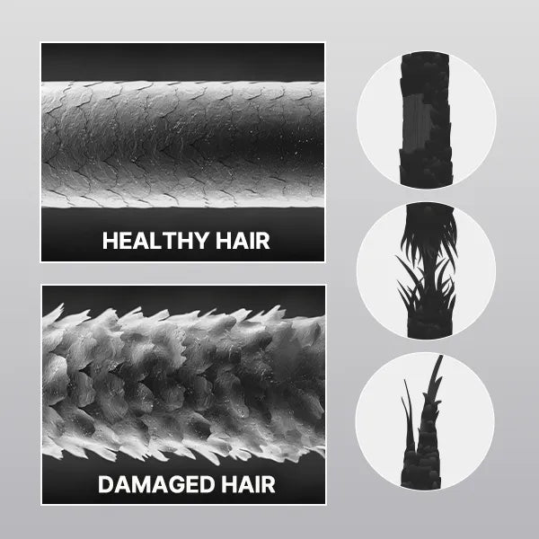 They give your hair its strength, elasticity, and shape. When these bonds break due to daily stresses caused by heat styling, brushing, coloring, or even sun exposure, your hair becomes weak, dry, and prone to breaking.