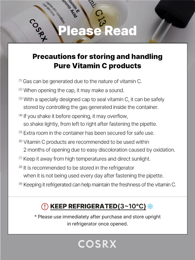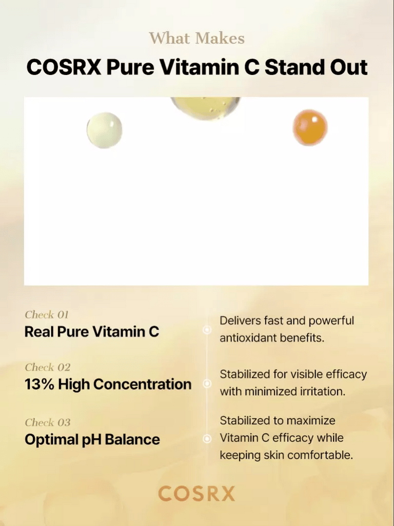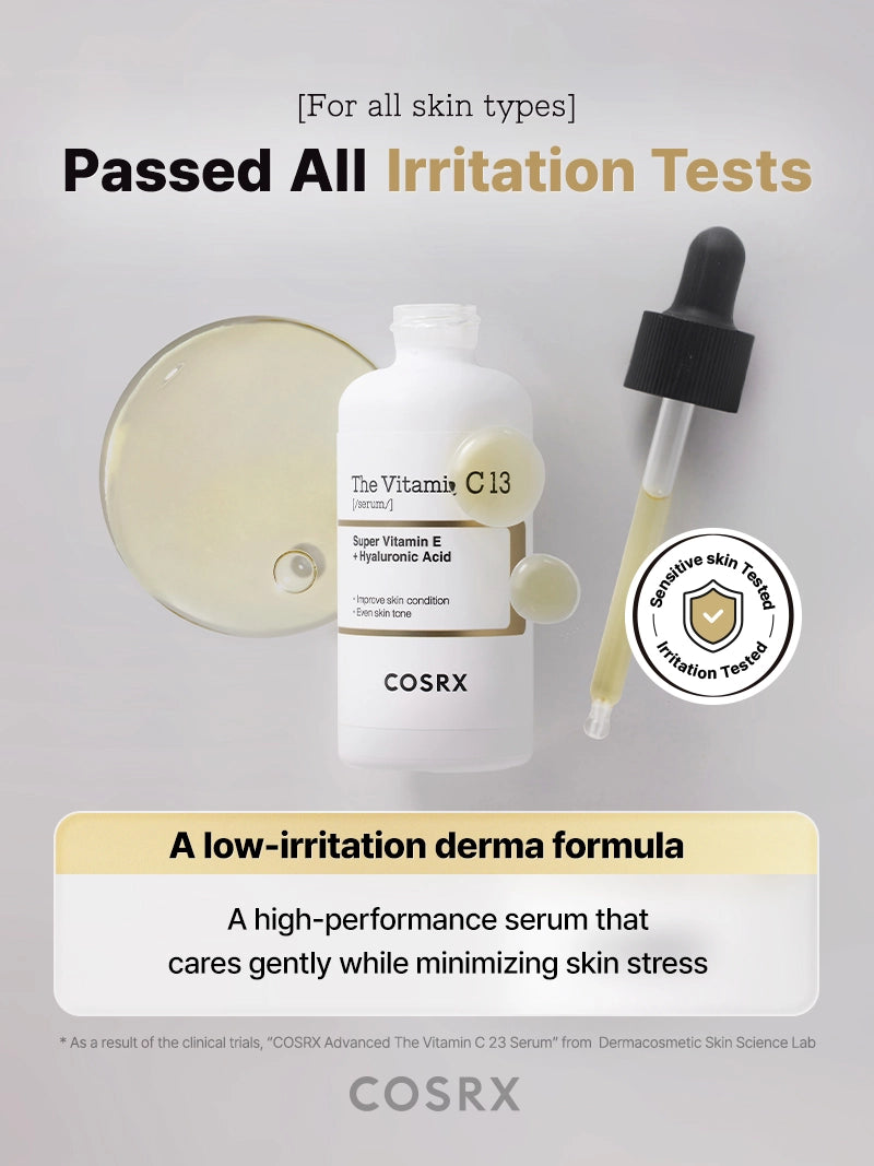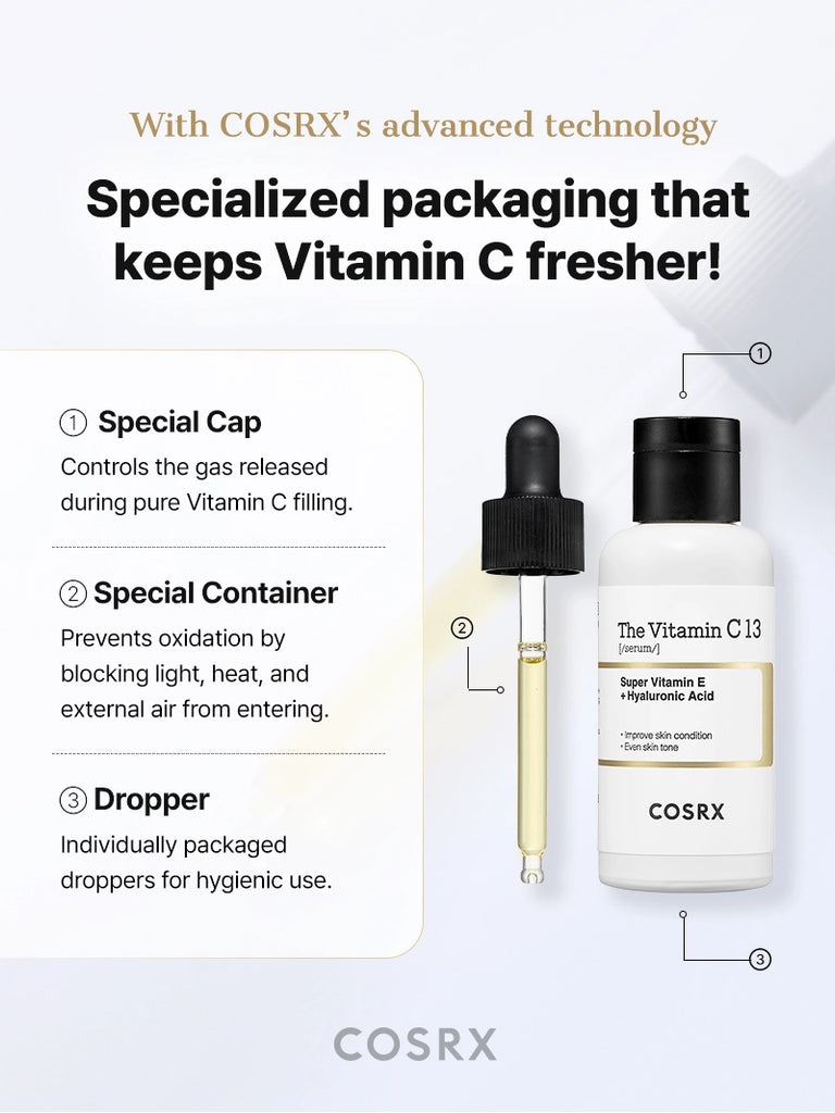 COSRX The vitamin C 13 serum is ideal for those who want a Vitamin C product for daily use that also cares for hydrating and brightening the complexion.
